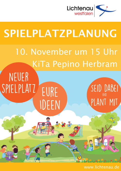Die Energiestadt Lichtenau erneuert den Spielplatz Sandheide in Herbram. Um das eingeplante Geld sinnvoll und im Sinne der Kinder und Familien einzusetzen, können sich alle Kinder am 10. November um 15 Uhr beim Planungstreffen in der KiTa Pepino Herbram einbringen.