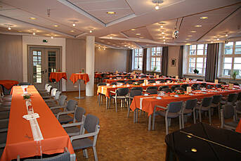 Saal (ca. 120 Personen) incl. Cafeteria (ca. 30 Personen) und Küchenbenutzung